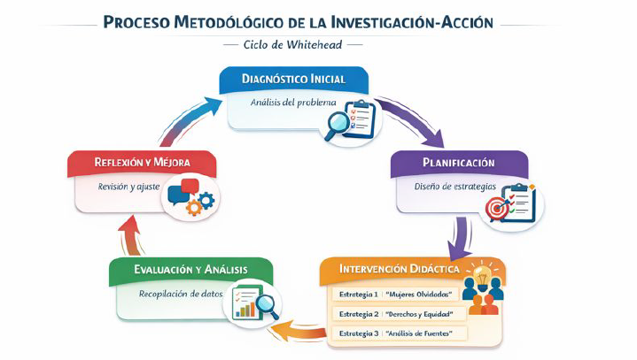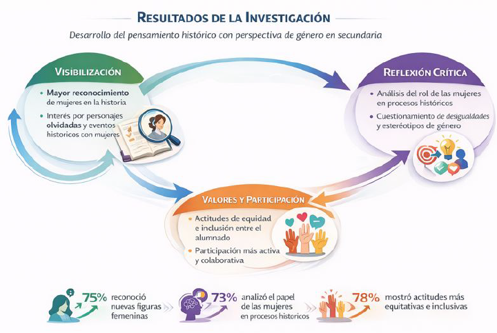 Abstract. In traditional history teaching, male figures have occupied a central place, while women’s contributions have remained invisible. This reinforces gender inequalities by failing to recognise the role of women in historical processes. This article analyses this problem through the design and implementation of teaching strategies aimed at gender-sensitive education and the promotion of a culture of equality in secondary school classrooms. The research was conducted with a first-year group in Chihuahua, Mexico, using a socio-critical action research approach. Three strategies were designed that incorporated a gender perspective into the content through collaborative activities, the use of ICT, analysis of historical documents, and participation of the school community. The results show greater recognition of female figures in history and broader awareness of gender equality. Likewise, historical thinking skills such as critical analysis, historical empathy, and source management were strengthened, along with values of respect and equality. In conclusion, integrating a gender perspective into history teaching promotes a more complete understanding of the past and a commitment to equality.