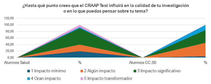 Gráfico 3. Impacto del Test CRAAP en la capacidad investigadora en Ciencias Sociales y Ciencias de la Salud. Elaboración propia.